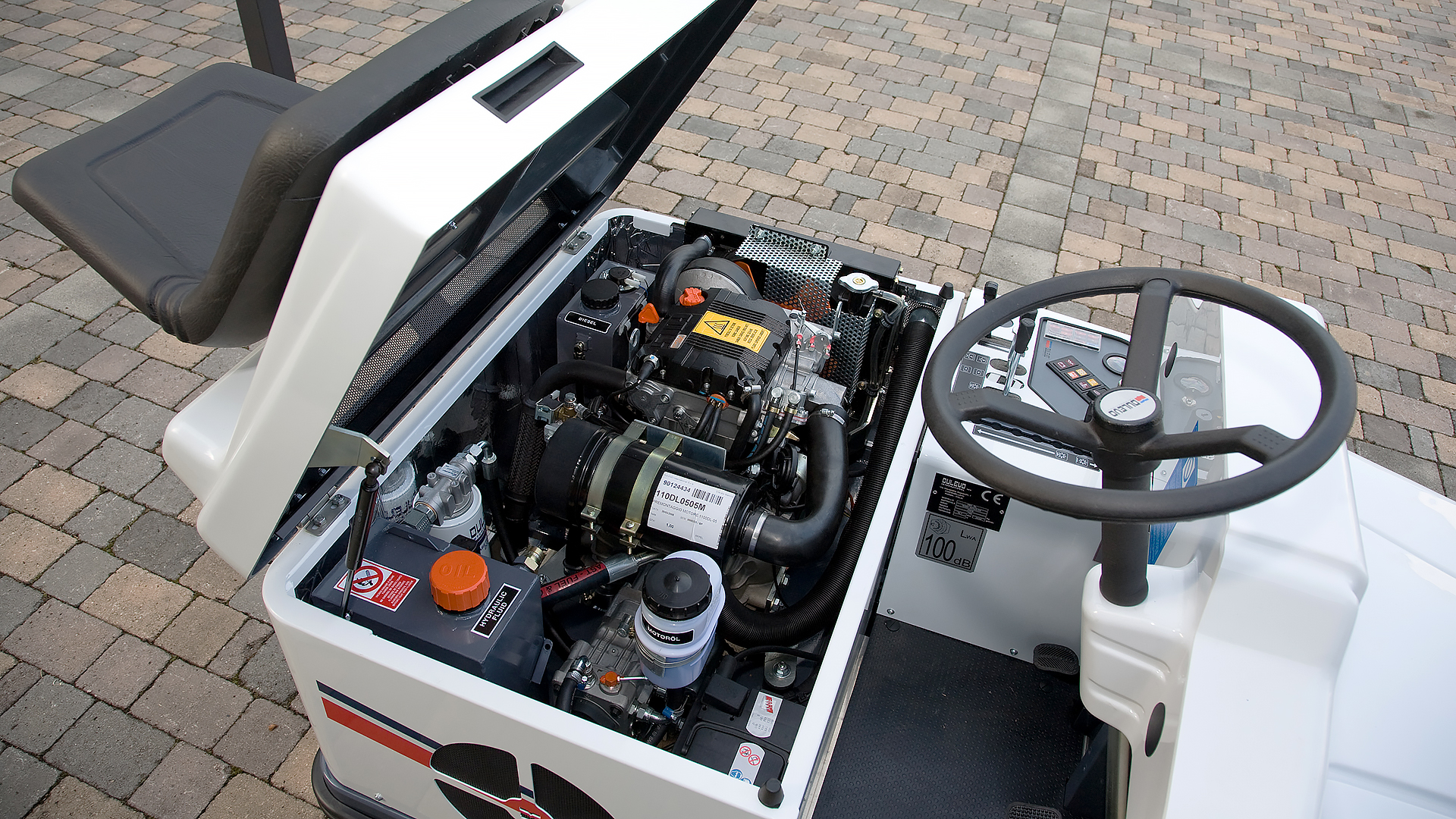 Denna maskin finns med tre olika motoralternativ. Bensin-LPG-motor och en Diesel motor, lämplig för utomhusområden, och Batteridriven motor för inomhus och utomhusområden. Alla versionerna kan också berikas med ett stort utbud av tillbehör.